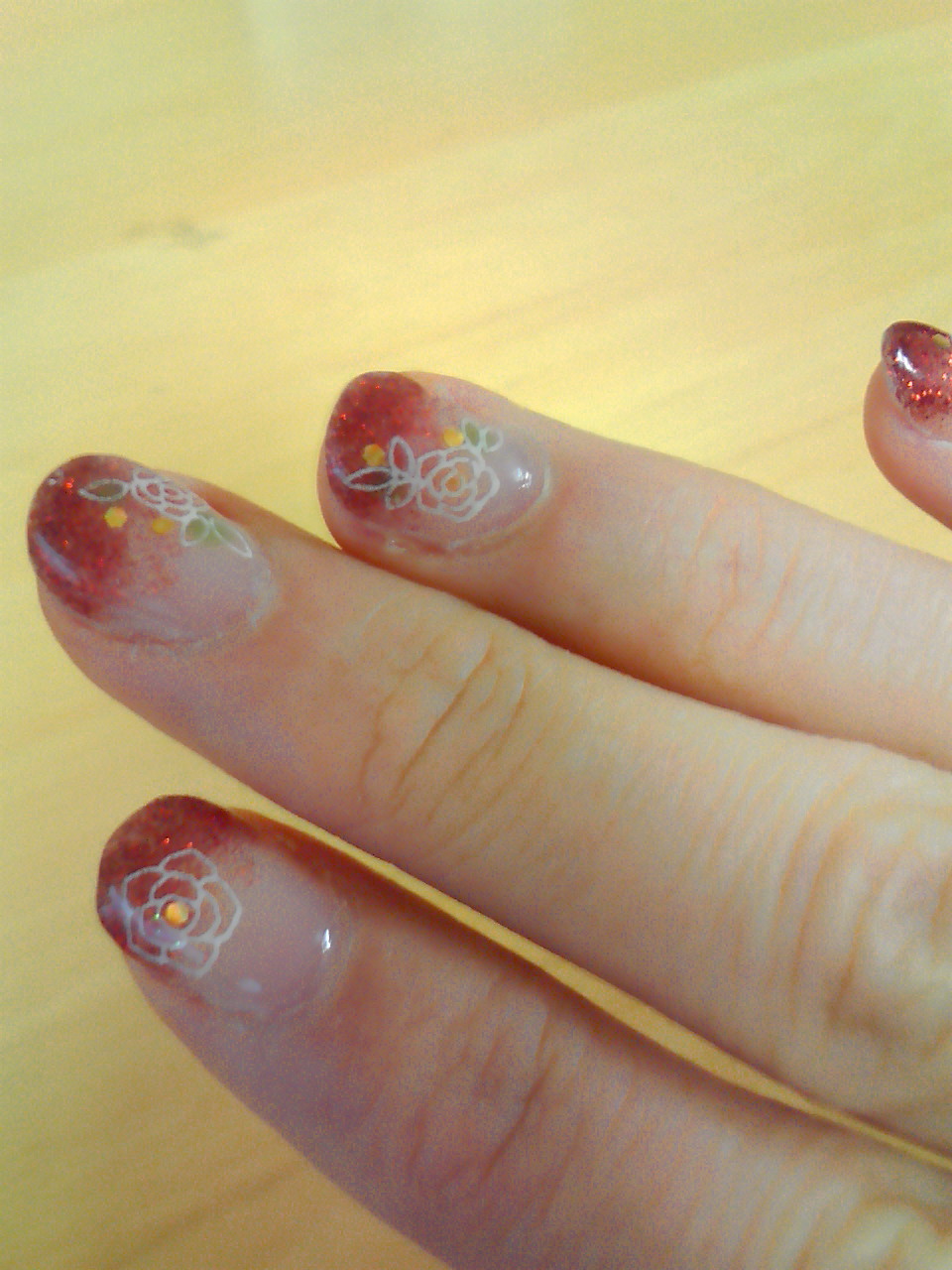なので、友達に赤系のジェルネイルをしてもらいました(*^_^*)
