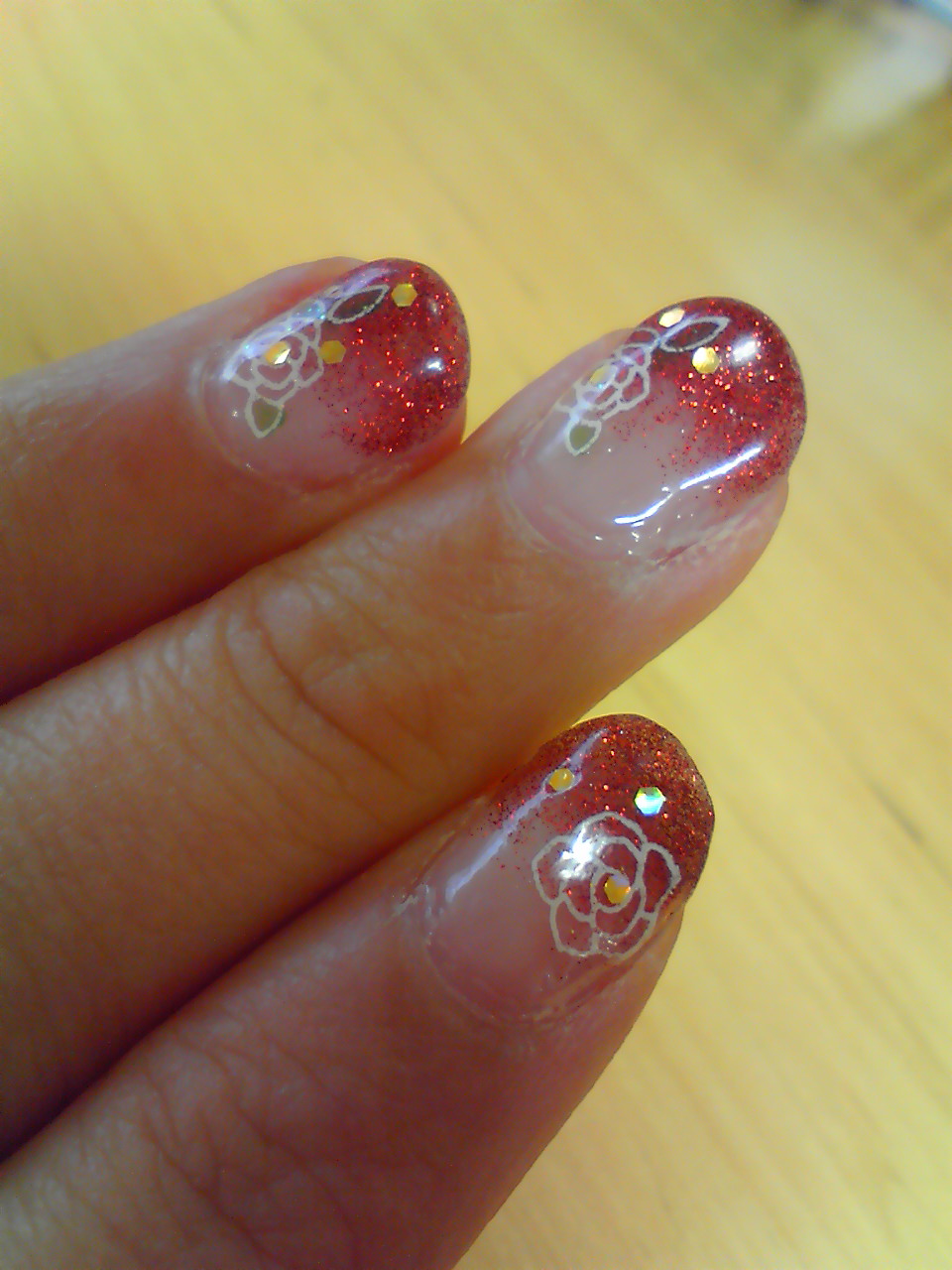 なので、友達に赤系のジェルネイルをしてもらいました(*^_^*)